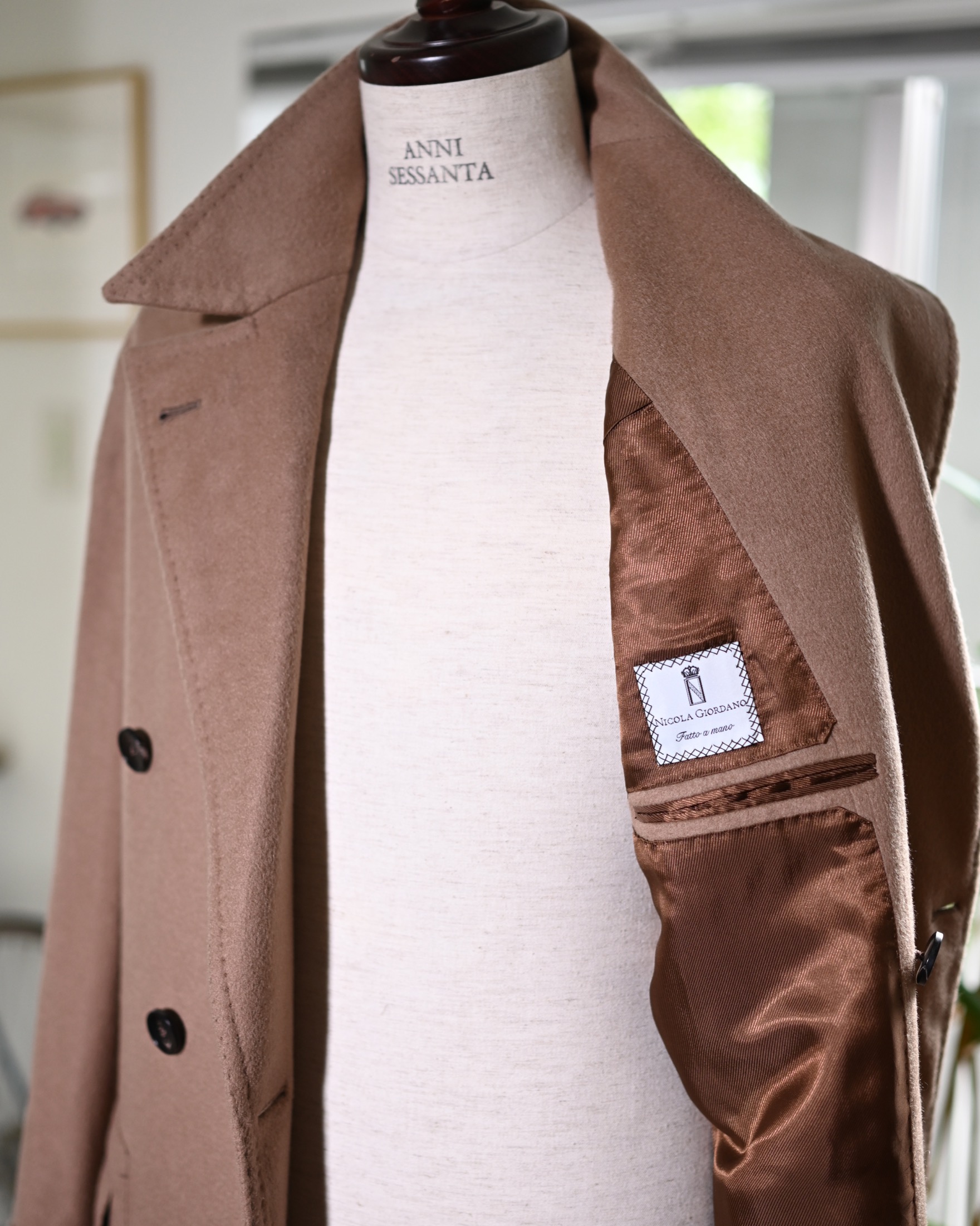 まだナポリ仕立てが世界的な注目を集める前、地元の紳士たちがオーダーしていた一張羅……ナポリ屈指のマエストロたちが手ぐせのように縫っていたジャケットやコートを思い出さずにはいられない。このコートを羽織った人は例外なく「職人仕事の跡」を感じずにはいられないだろう。