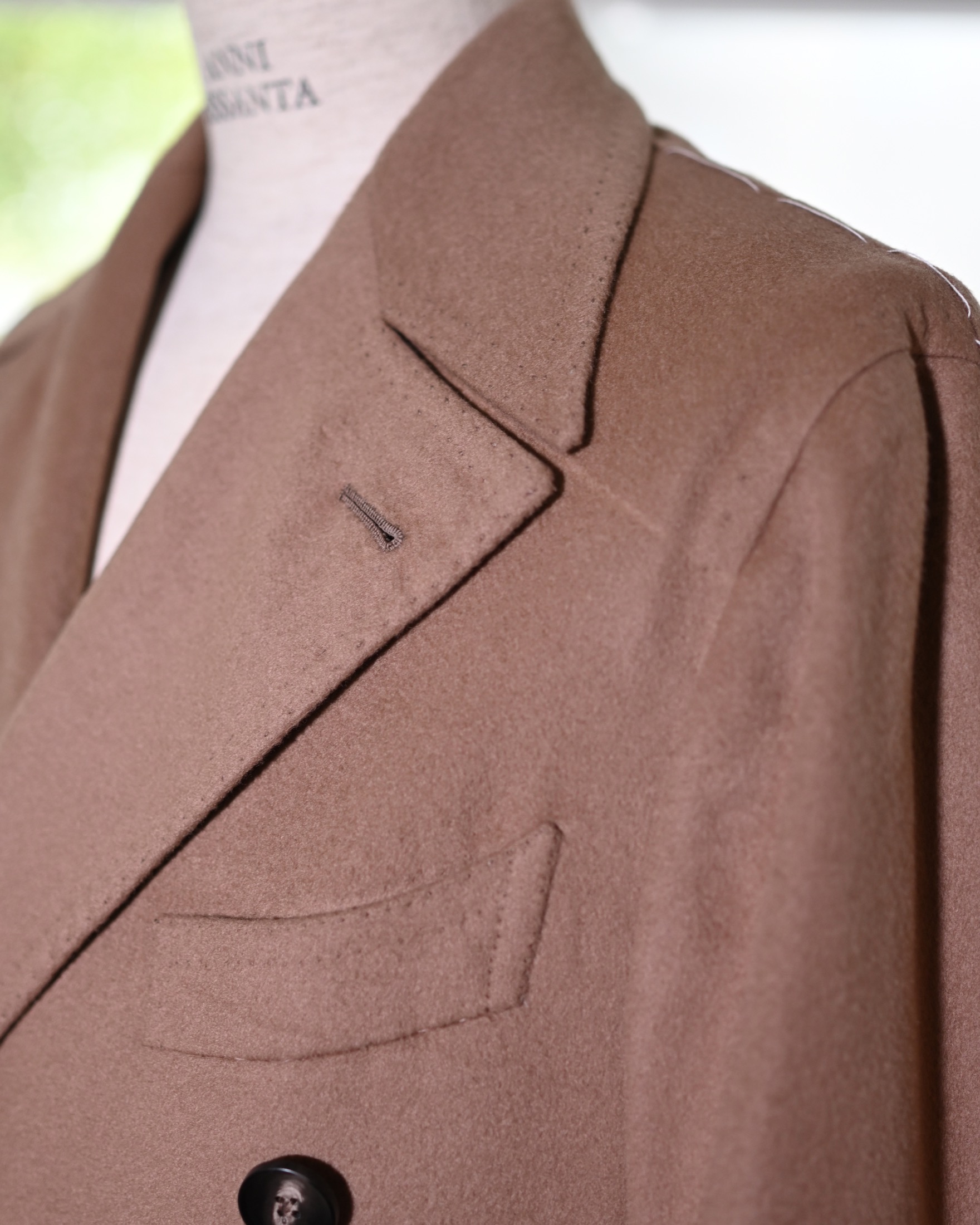 ディテール一つをとっても圧倒的なクオリティだ。軽さ、柔らかさ。それだけがこのコートが通常のビスポークから一線を画す部分である。